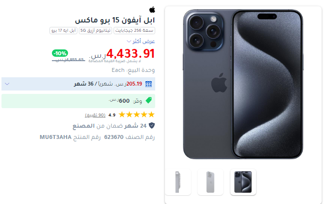 مواصفات آيفون 15 برو ماكس 256 جرير