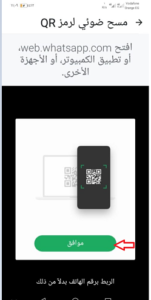 - لإتمام عملية المسح قم بتوجيه الهاتف نحو جهاز الحاسوب لديك، ومن ثم اضغط علي موافق لتتم عملية المسح.